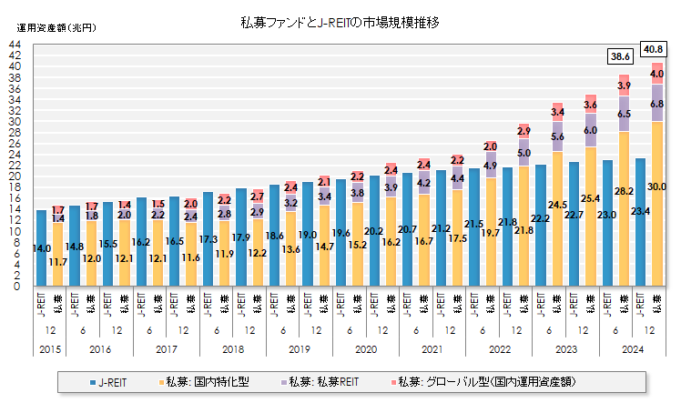 ─ 不動産私募ファンドの市場規模を私募REIT・グローバルファンドを含めて40.8兆円と推計