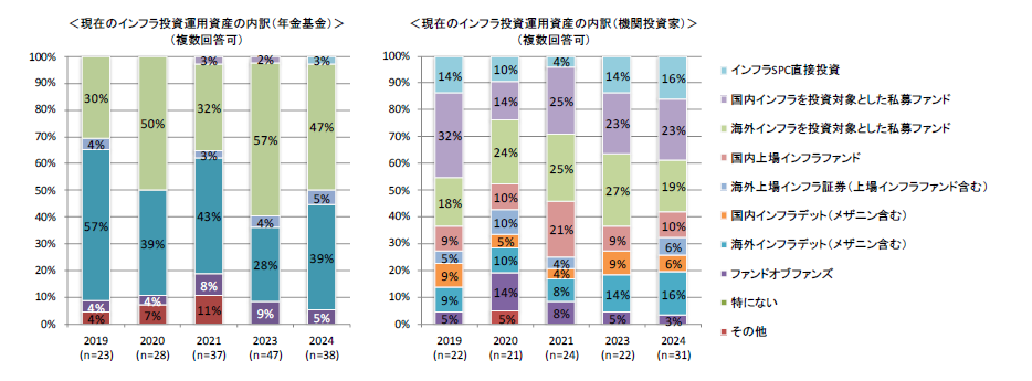 年金基金は海外インフラファンドに集中、機関投資家は国内インフラファンド等にも分散